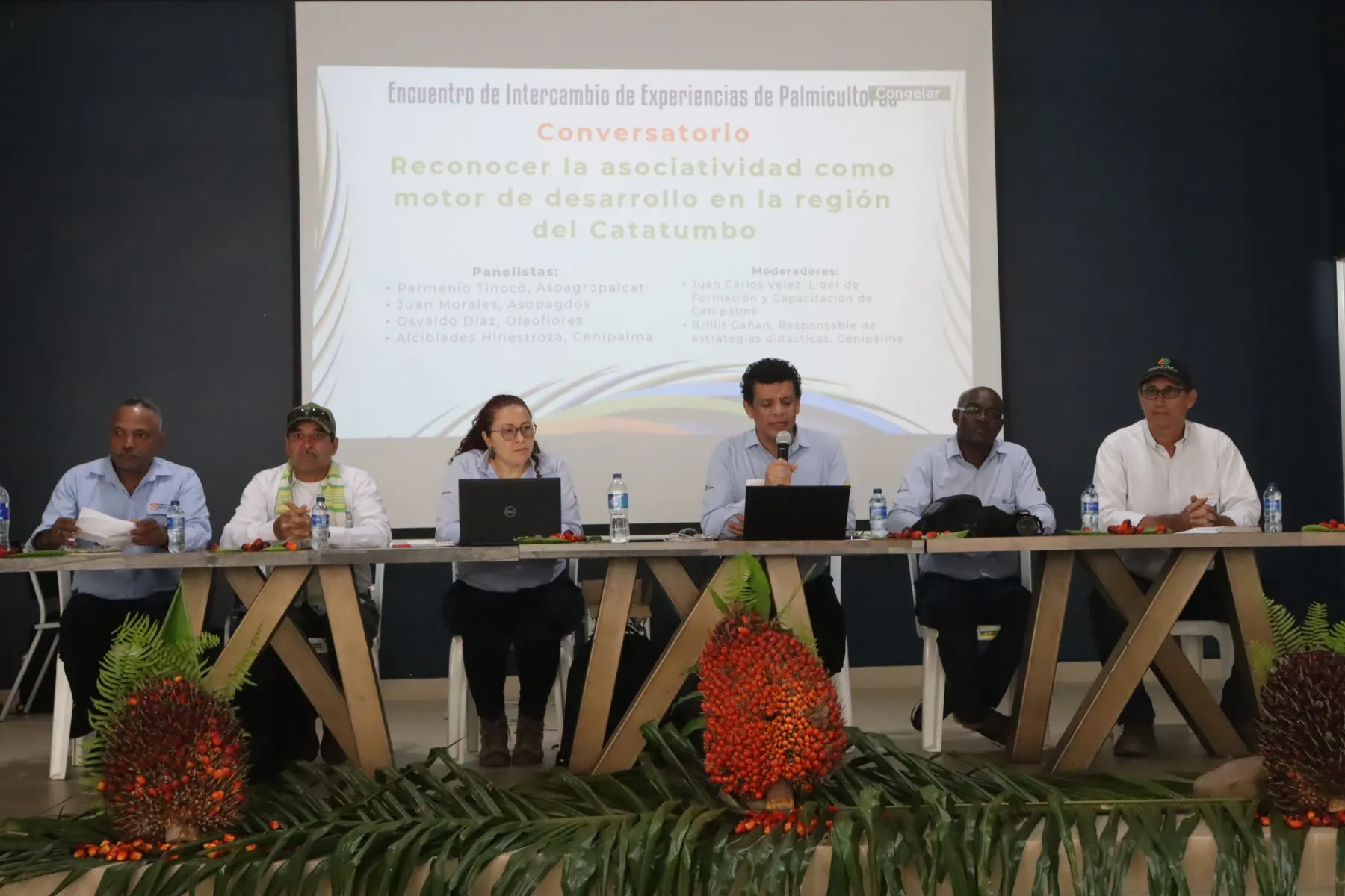 En este sentido, el encuentro abrió con el conversatorio: “Reconocer la asociatividad como motor de desarrollo en la región del Catatumbo”, que contó con la participación de reconocidos líderes palmeros nortesantandereanos como Parmenio Tinoco, Gerente de la Asociación agropecuaria palmicultores del Catatumbo, Asoagropalcat; Juan Antonio Morales, miembro de la Junta Directiva de Asogpados, Oswaldo Díaz, Jefe División Pymes de Oleoflores y Alcibíades Hinestroza, Líder de Promoción y Desarrollo de la Asistencia Técnica de Cenipalma, quienes dialogaron sobre el inicio del cultivo de la palma de aceite en Tibú, la evolución de la asociatividad en el Catatumbo y el papel fundamental que jugó en el desarrollo empresarial y social del departamento de Norte de Santander.